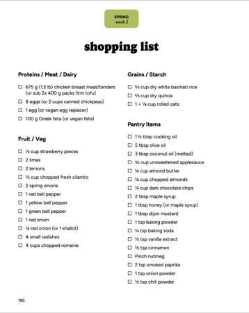 Spring week 3 meal prep - Shopping list download